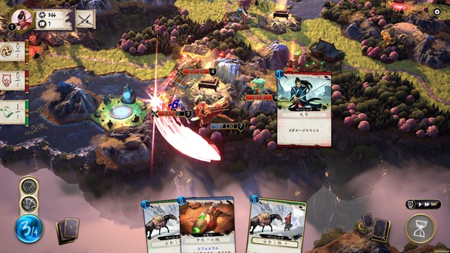 日本風の世界観が特徴のデッキ構築 + タクティクスゲームです。カードを使ってヘクスマップを移動する探索要素が大きな特徴。