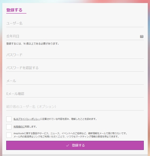 チェックボックスのプライバシーポリシーと利用規約はチェック必須。一番下は最新情報のメール配信を希望するかどうかのチェックで、こちらは任意です。