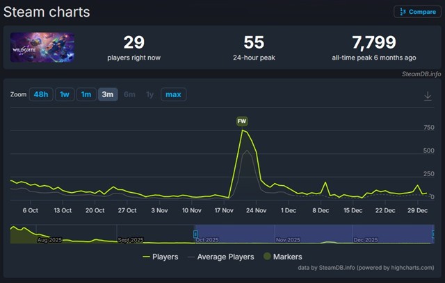 現状SteamDBを見る限りでは決してにぎわっているとは言えない状況です。