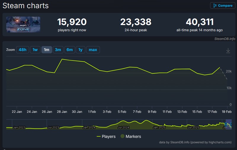 Steamでは同時接続者数(ピーク時)は安定して2万人近くを集めており、非常に高い人気を誇っています。
