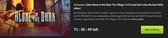 GOGで、サバイバルホラーゲームの名作「Alone in the Dark」の初期3部作をセットにした「Alone in the Dark: The Trilogy 1+2+3」が無料配布中です。(入手はGOGトップページから。)