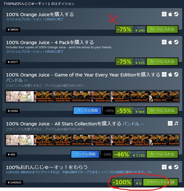 Steamで、ボードゲーム「100%おれんじじゅ~すっ!」が期間限定で無料配布中です。