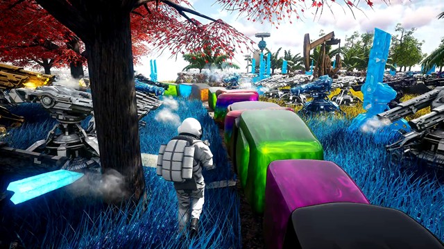 ウェーブをクリアした報酬で土地を購入し、新しい資源やクラフトレシピを発見しながら世界を広げていきます。