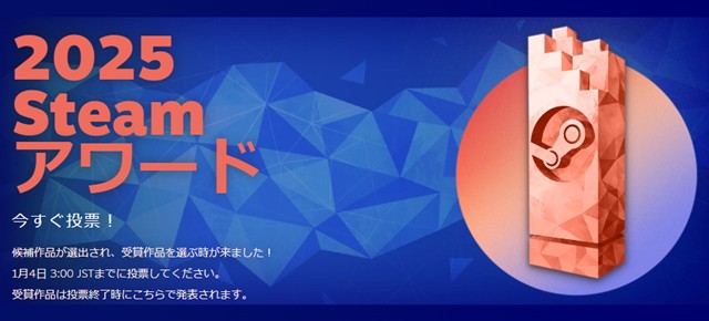 「Steamアワード」の最終投票を実施中です。ファン投票によって選出された11部門のノミネート作品に対し最後の投票を行うことができます。