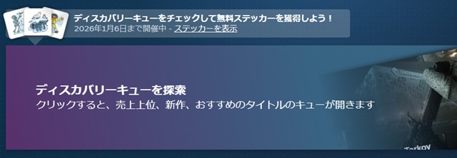「ディスカバリーキュー」をチェックすることで「ウィンターセール2025ステッカー」が3枚貰えます。