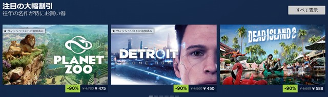 往年の名作コーナーがかなり熱そうです。過去最安値を大幅に更新しているタイトルが多数あります。