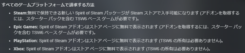 Steam版、Epic版はベースゲームを所有していないと入手できませんが、10月に体験版的位置づけの「Train Sim World 6 無料スターターパック」が期間限定で配布されており、それを貰っていればこのDLCも無料で入手できます。(無料スターターパックの配布はすでに終了しています。)