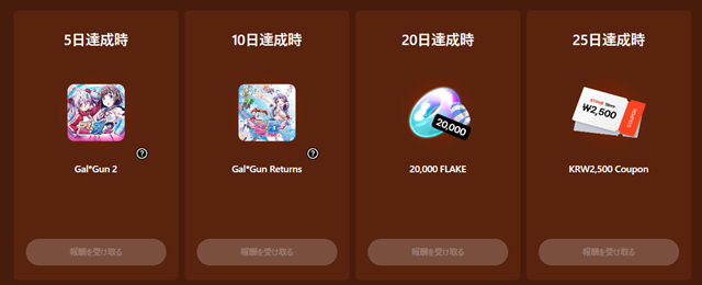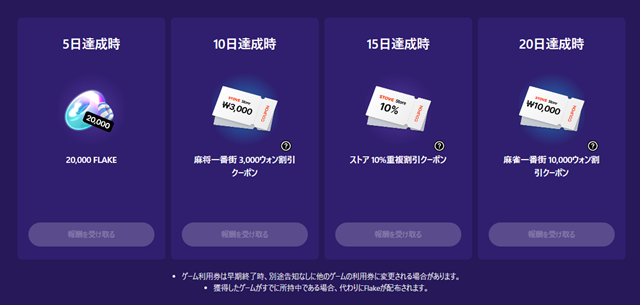 期間中に指定の日数チェックインすることで報酬が貰えます。